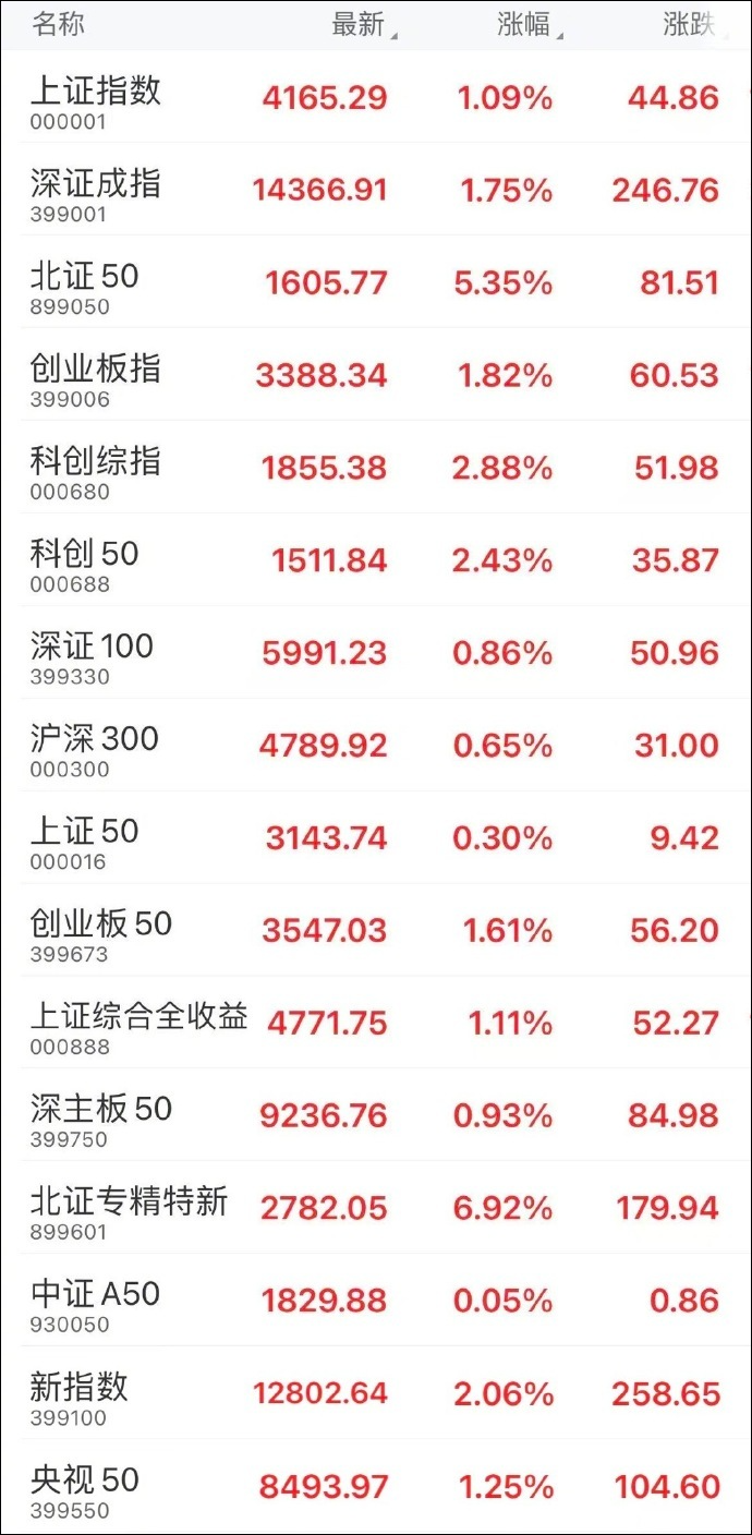 收盘:上证指数涨1.09%,深证成指涨1.75%,创业板指涨1.82%。AI应用题材全线爆发,商业航天、核聚变、零售、半导体概念股活跃,市场逾4100股上涨。A股今日成交额超3.6万亿元,创单日成交额历史新高。